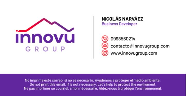 Para cualquier pregunta adicional o información específica sobre el espacio de montaje, por favor contacta a Nicolás Narváez al 0998560214 o escribe un email a contacto@innovugroup.com.